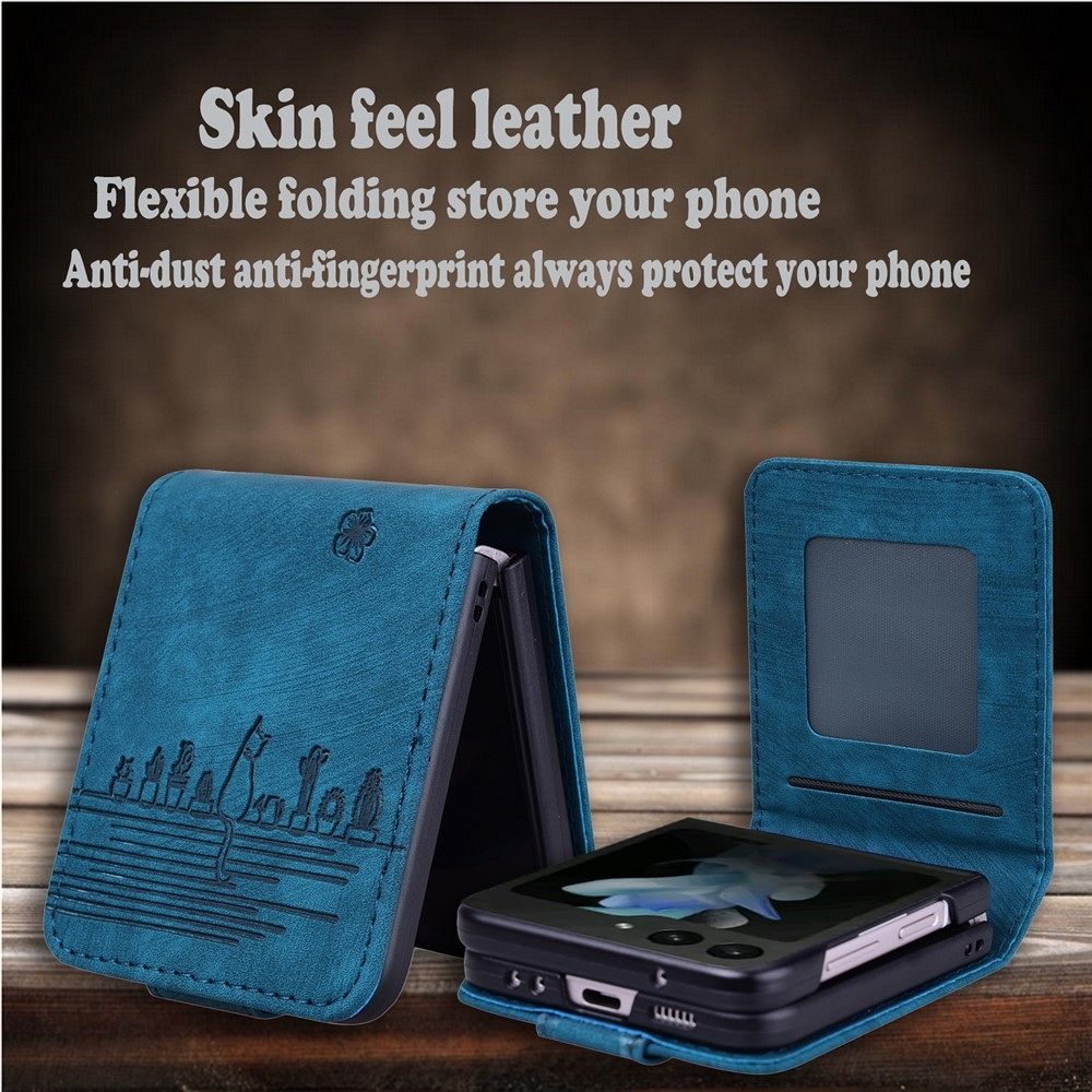 Ovitek "Cherry Blossom Cat Leather" (Blue) za Samsung Galaxy Z Flip 7