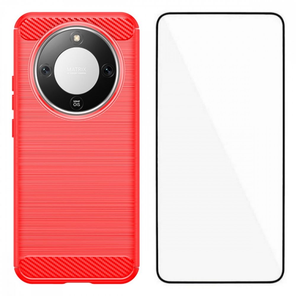 Ovitek WANLONFENG "Brushed Texture TPU" (Red) +Tempered Glass za Honor Magic 8 Lite