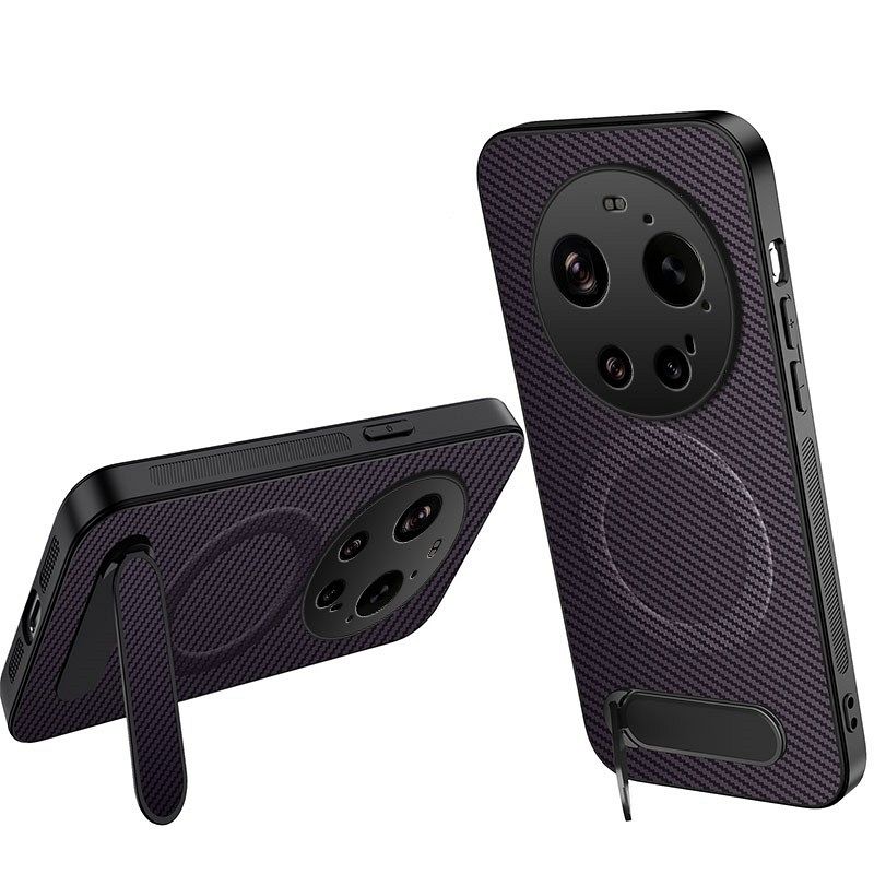 Ovitek "WANLONFENG Kickstand Carbon Fiber Texture" MagSafe (Purple) za Xiaomi 17 Ultra